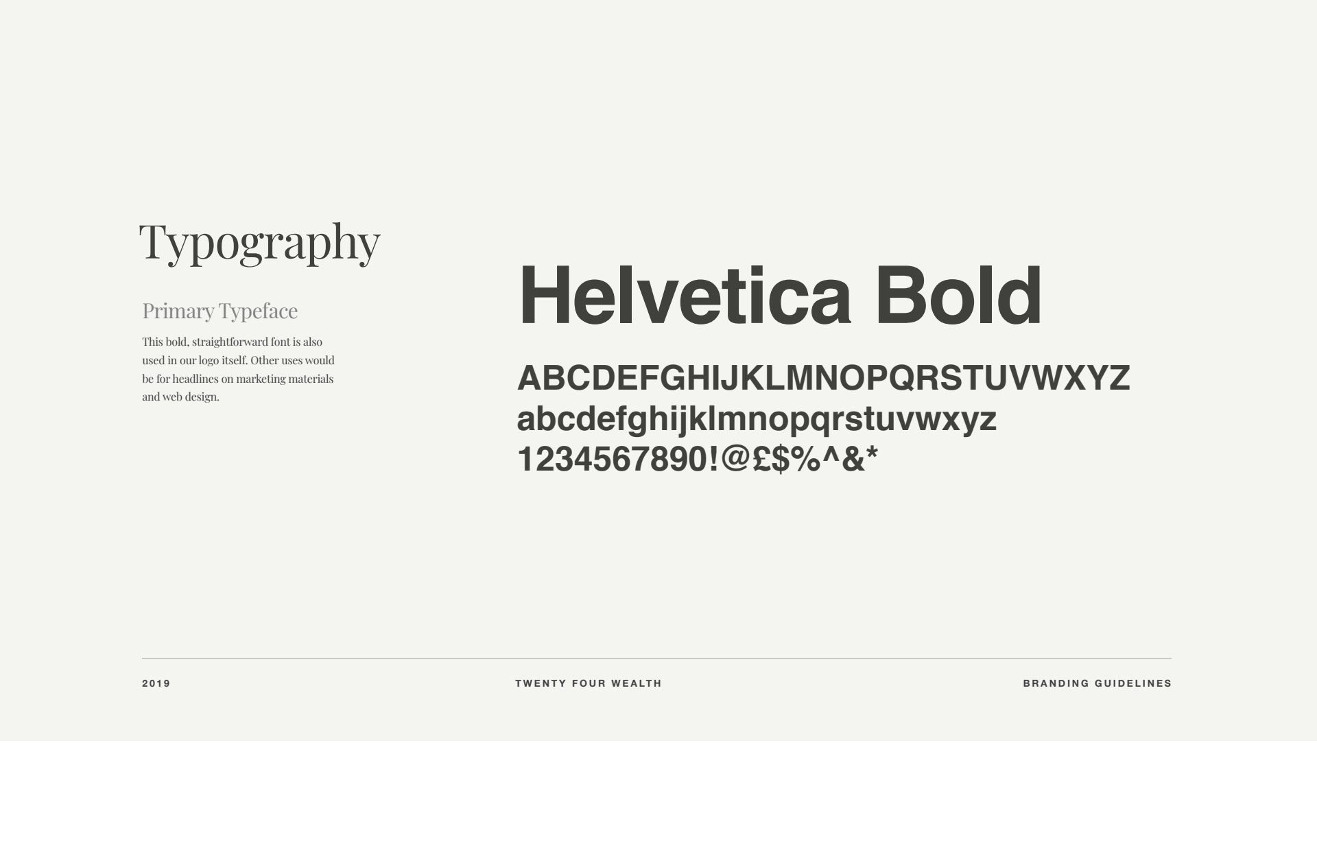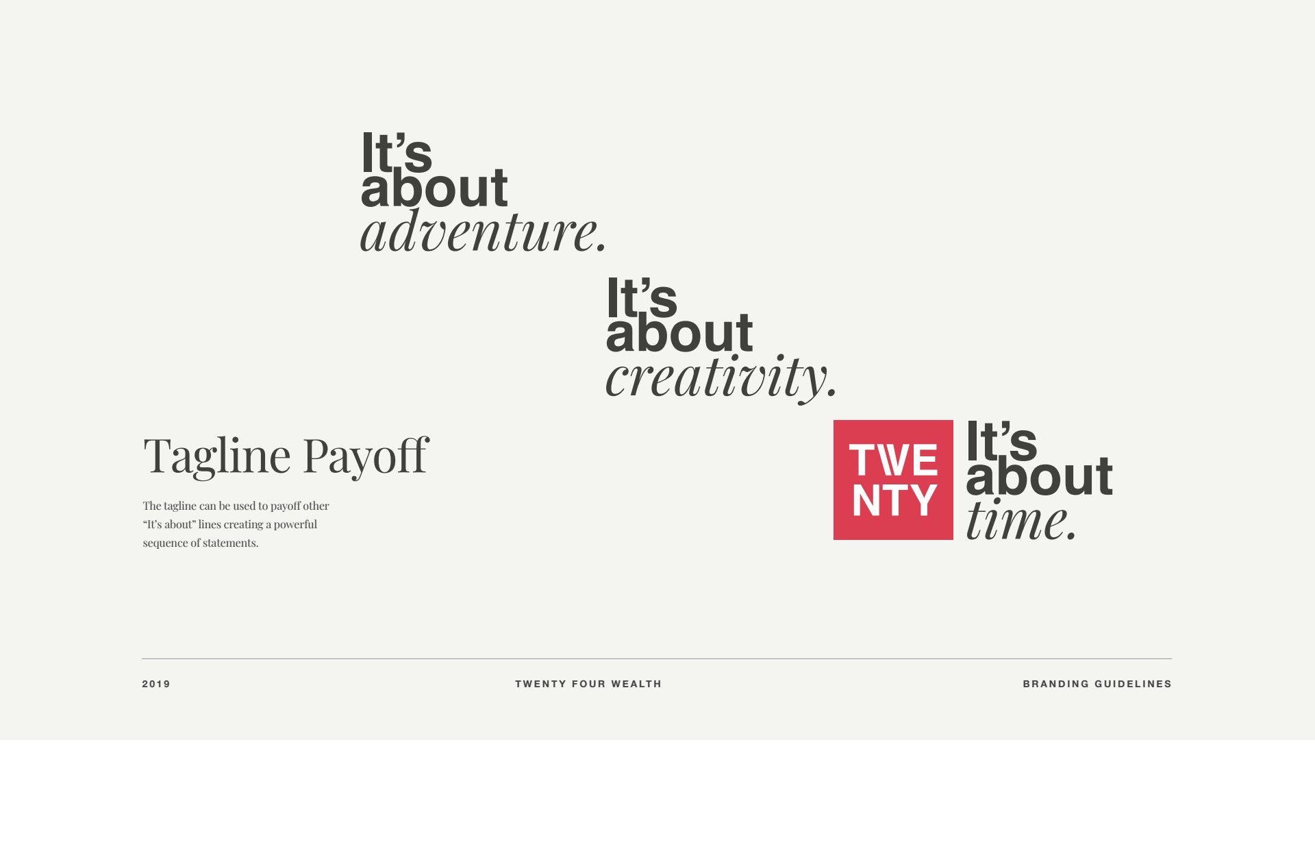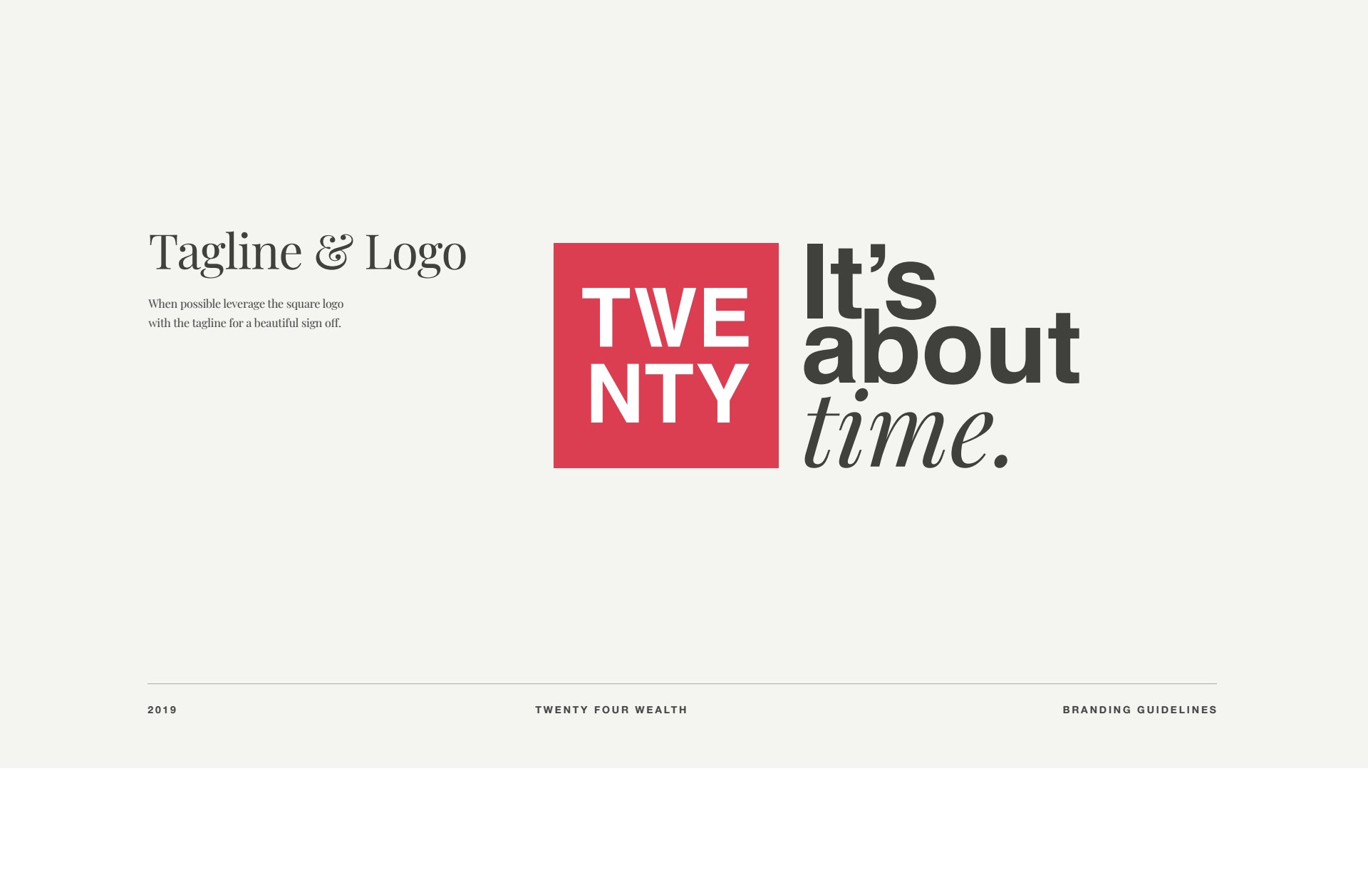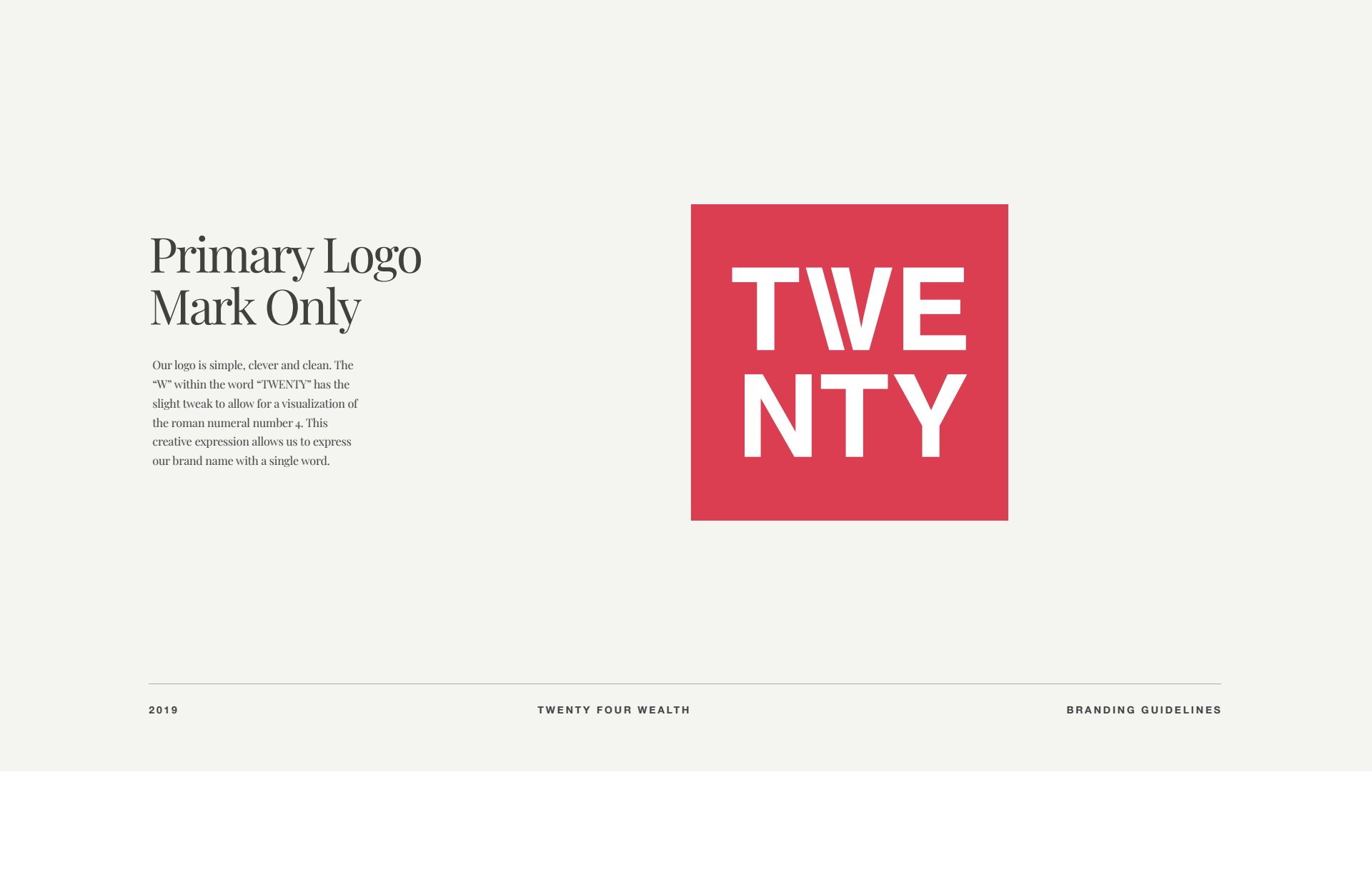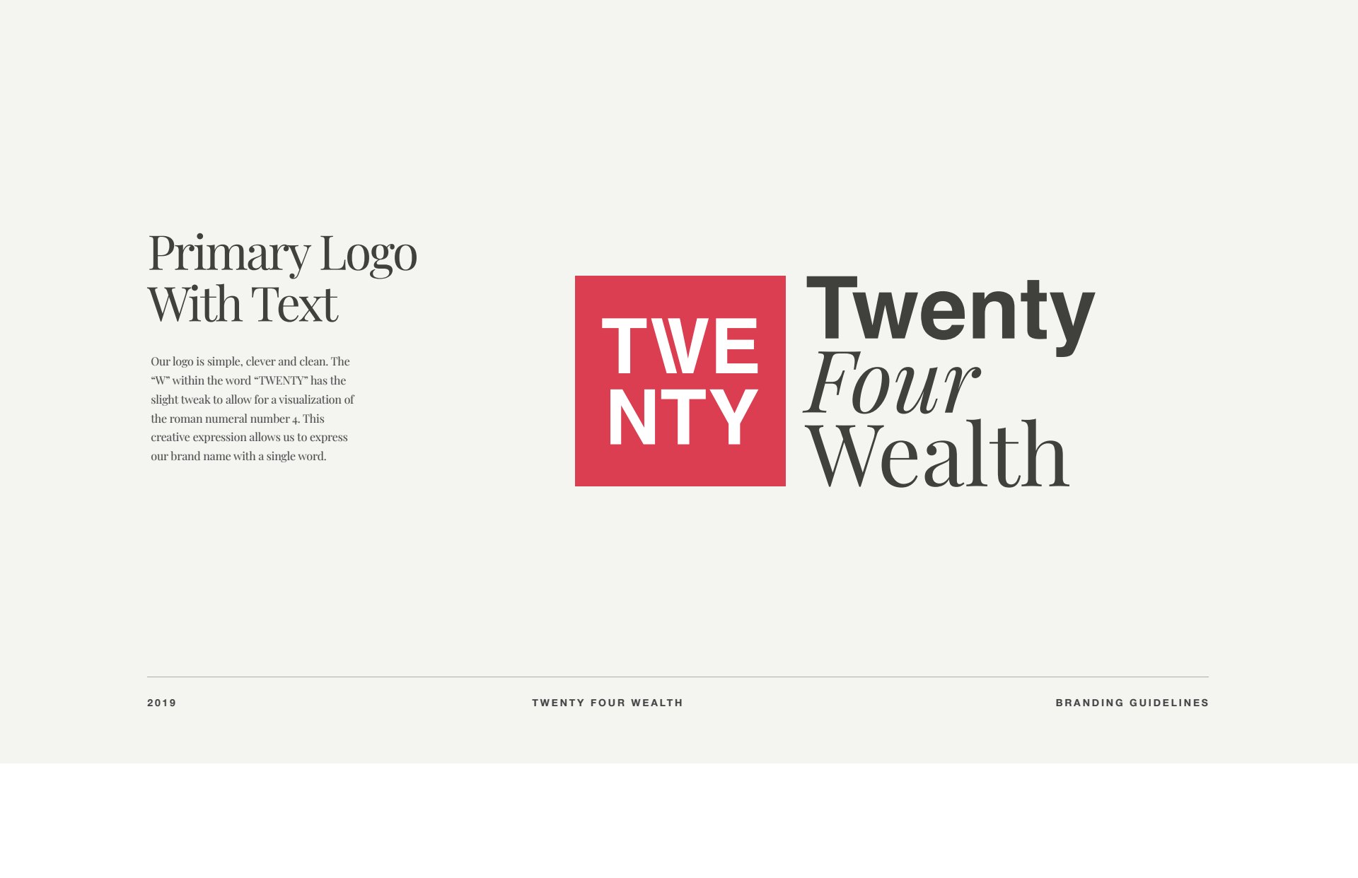 Logo + Tagline + Identity System / Brand guidelines for wealth management company Twenty Four Wealth