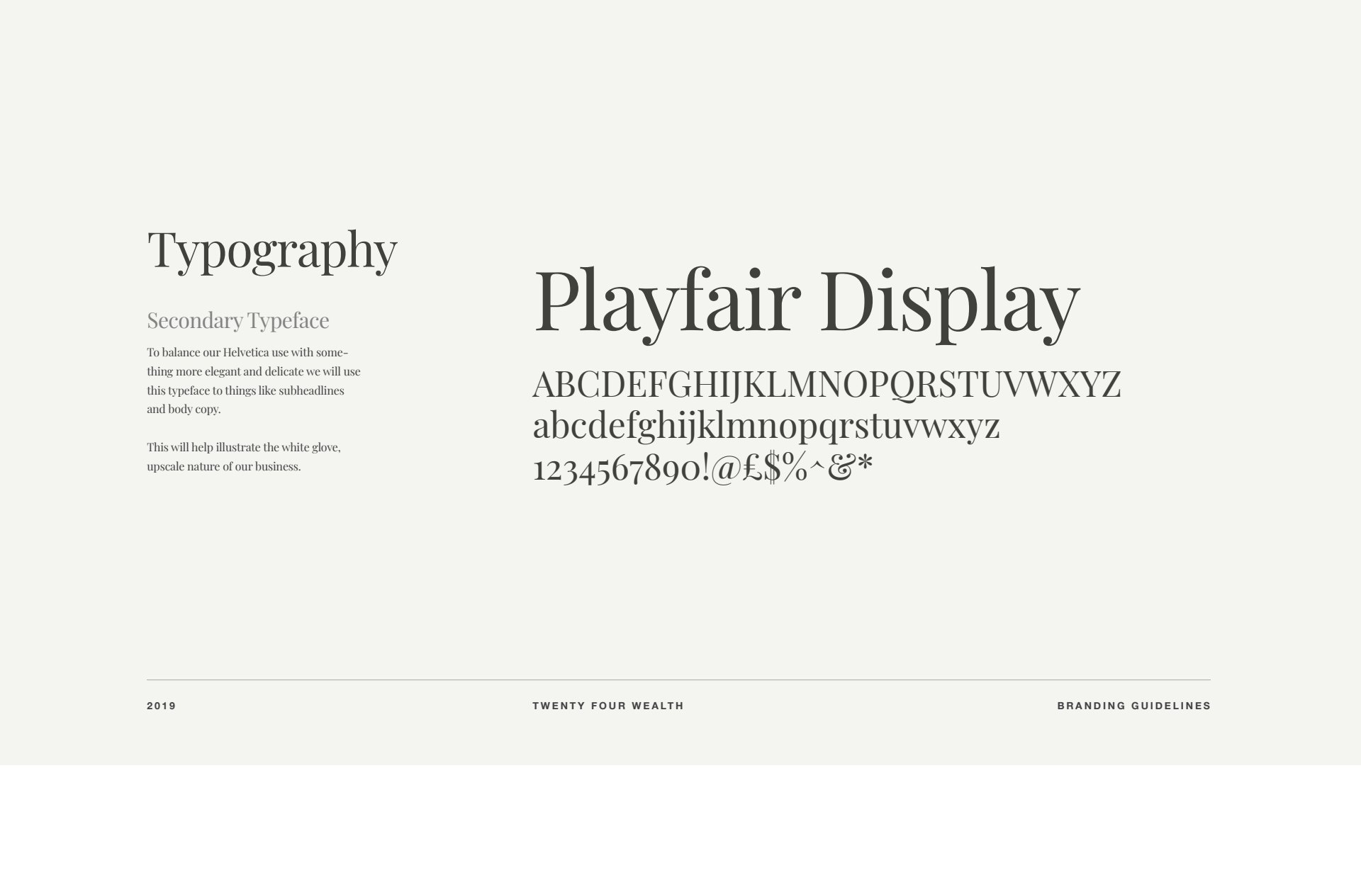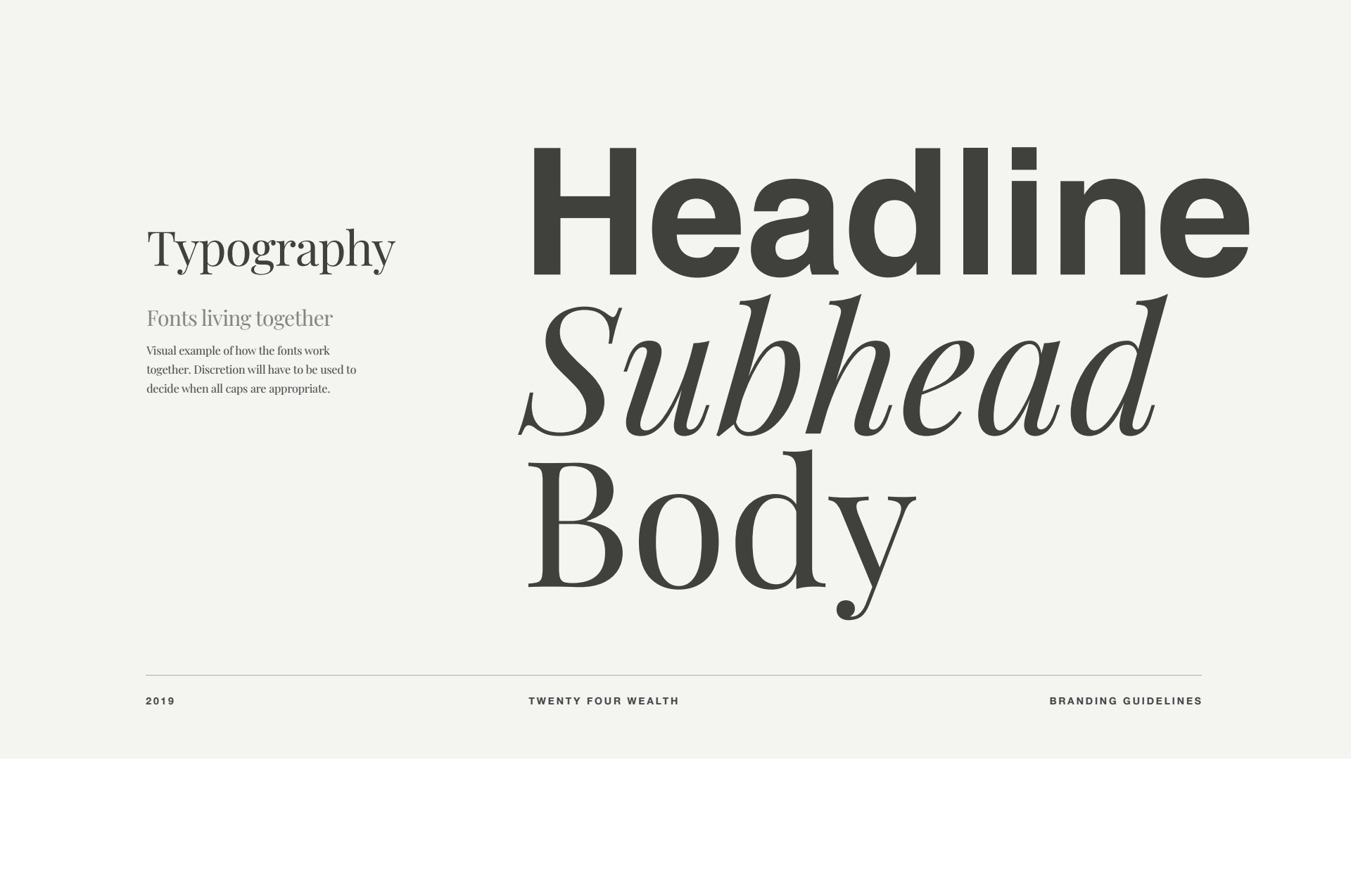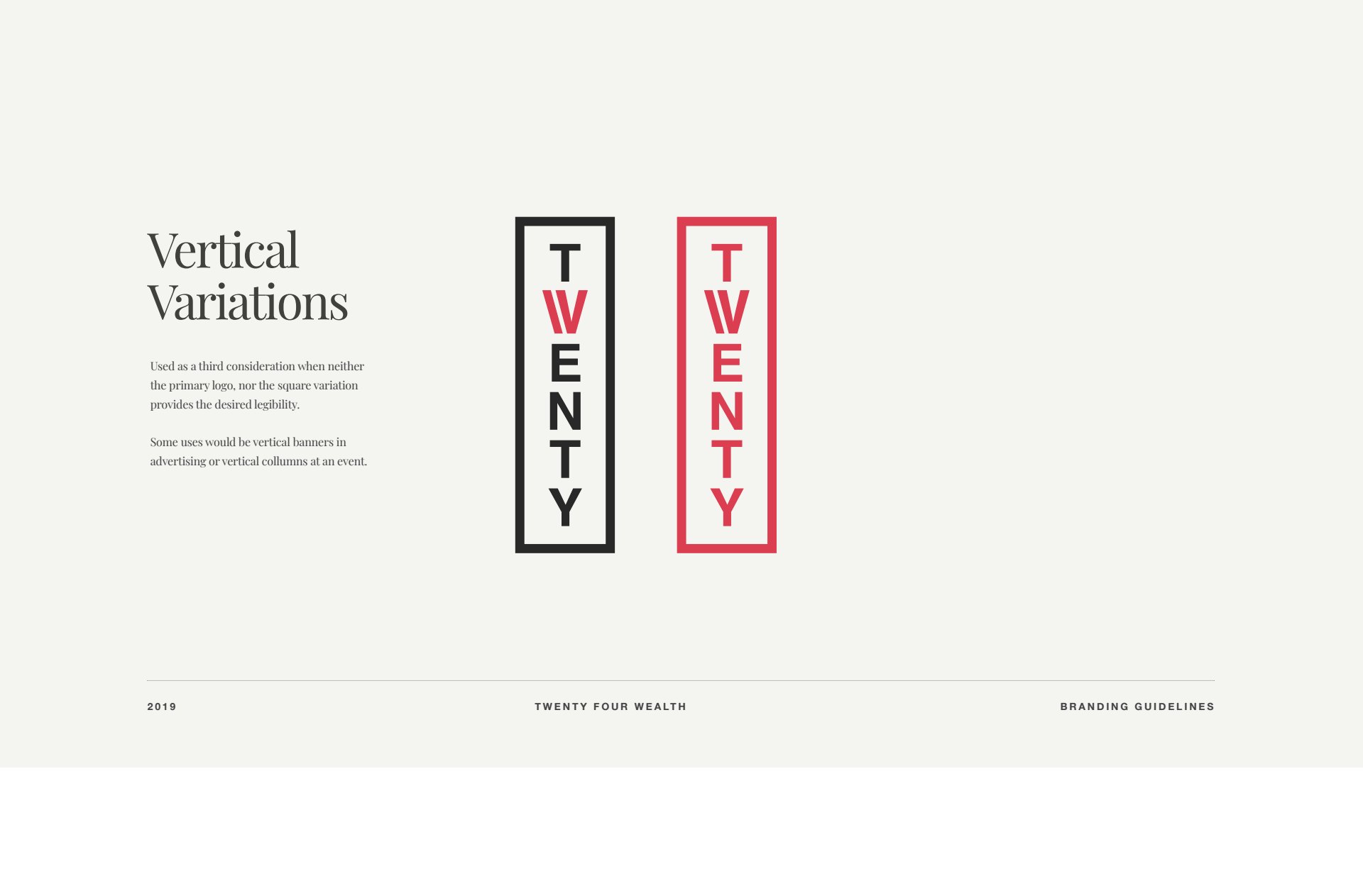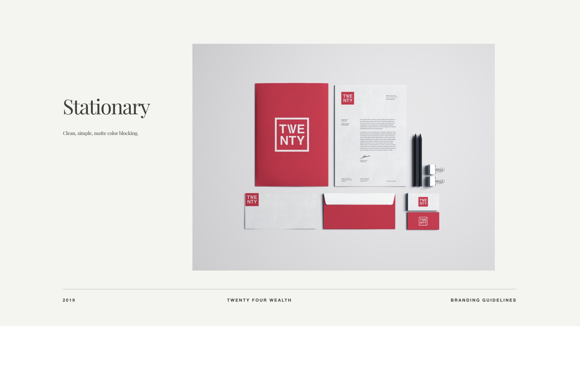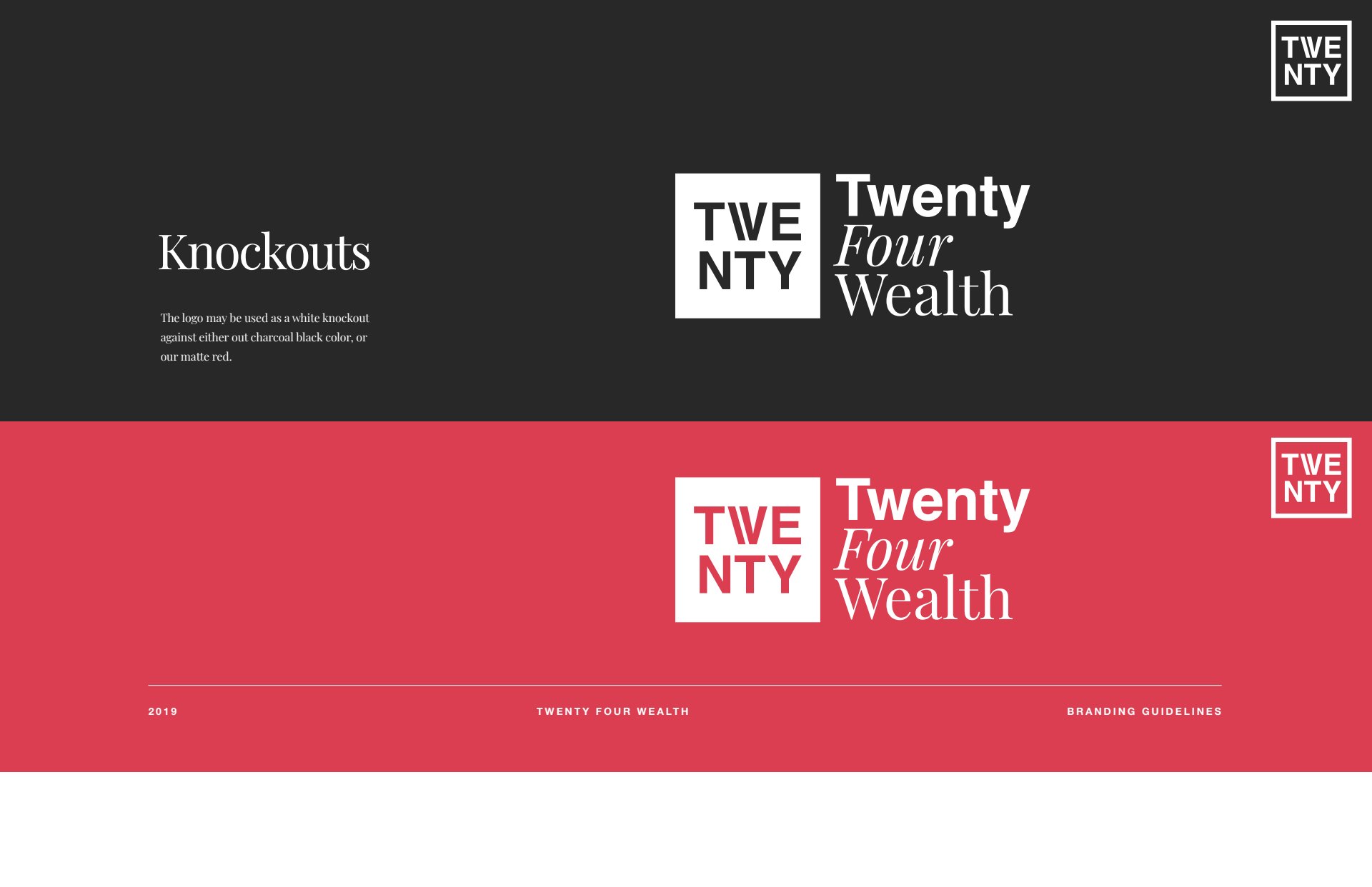 Logo + Tagline + Identity System / Brand guidelines for wealth management company Twenty Four Wealth