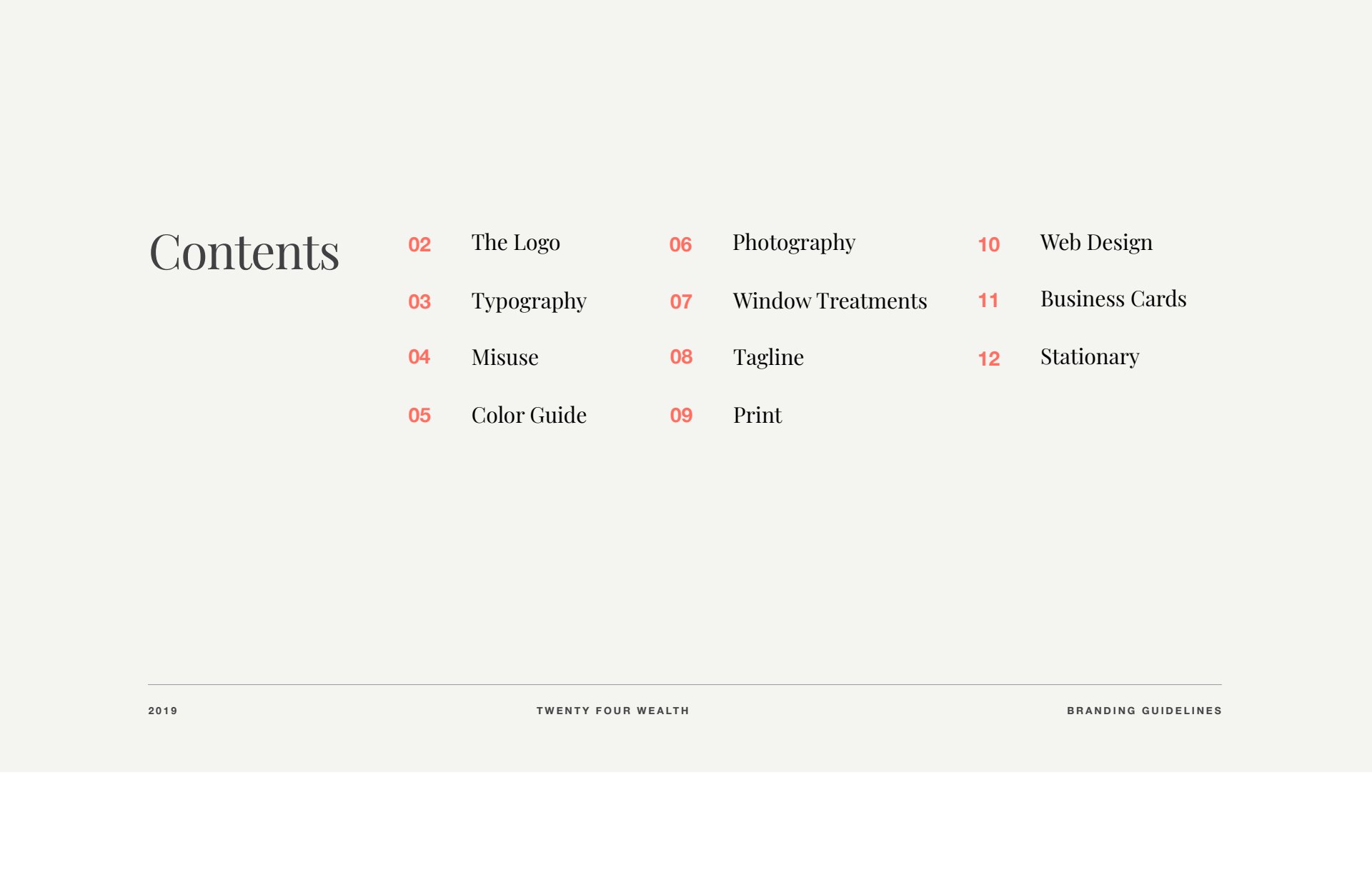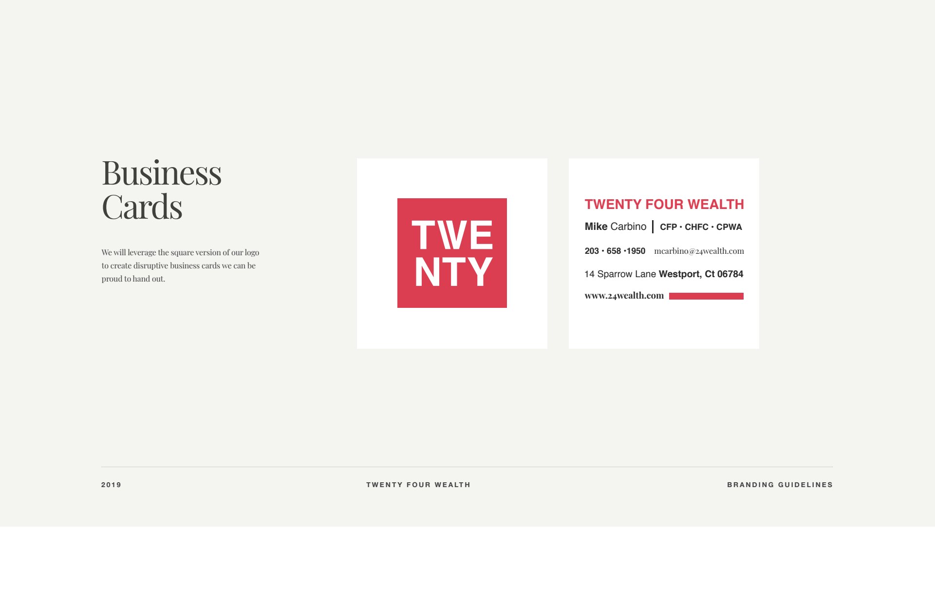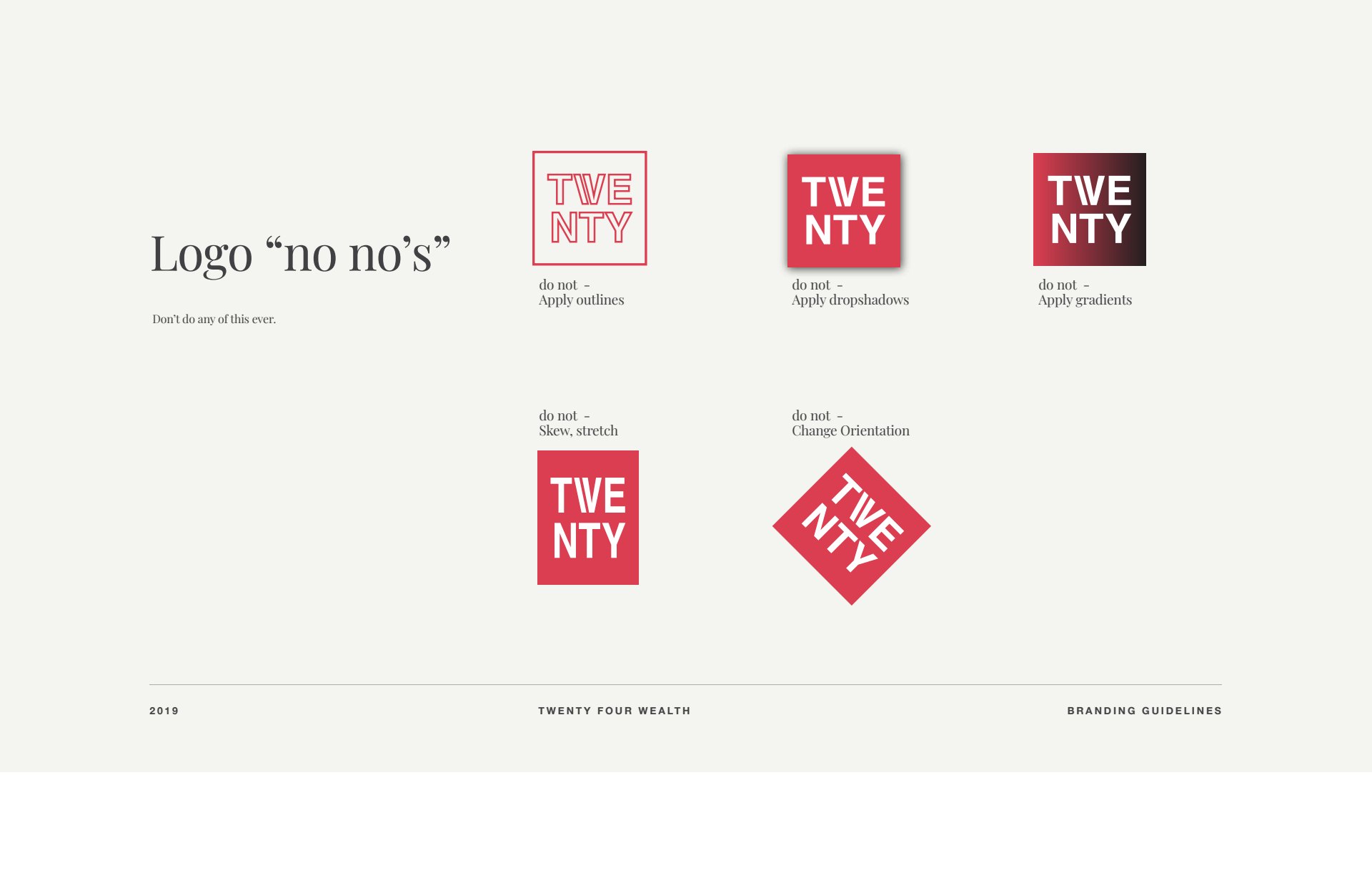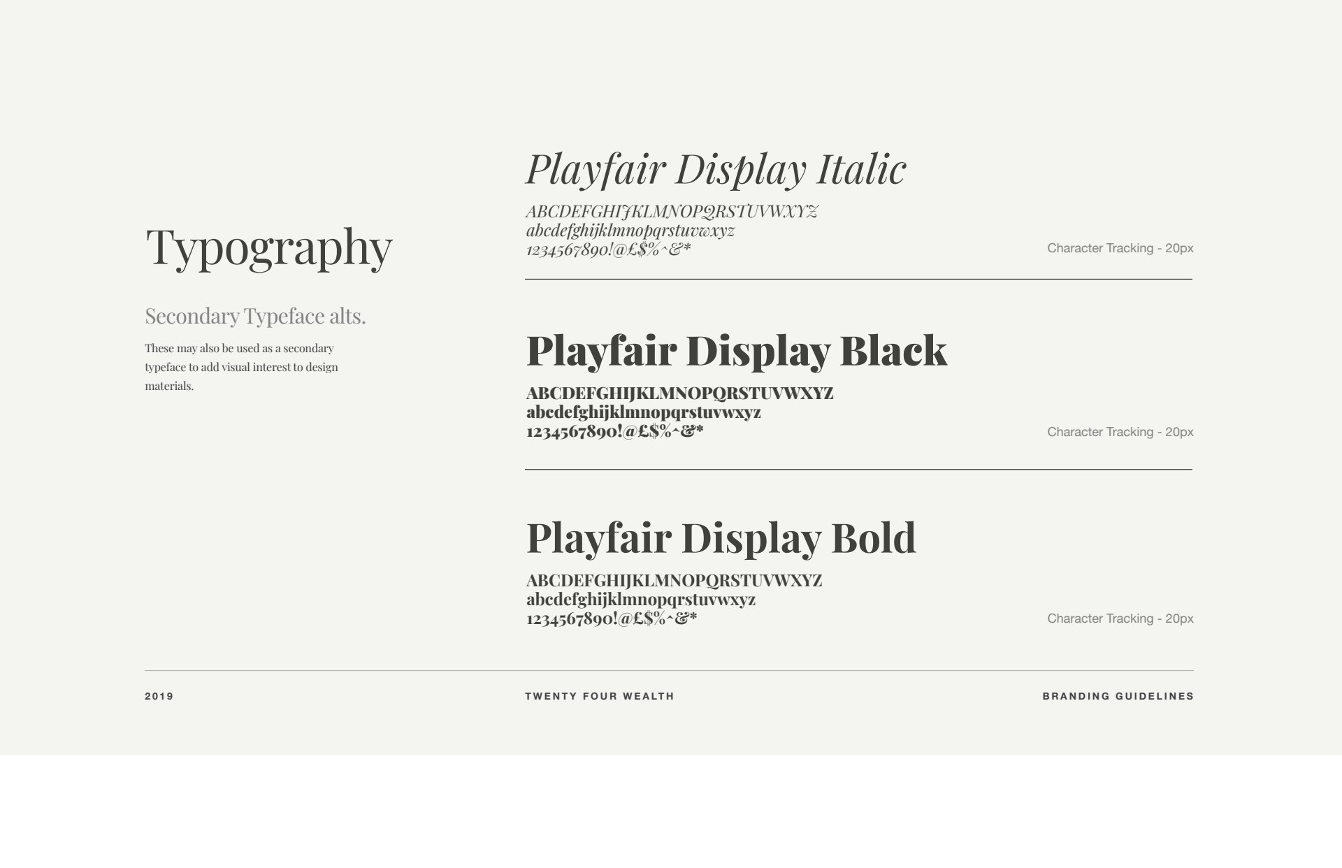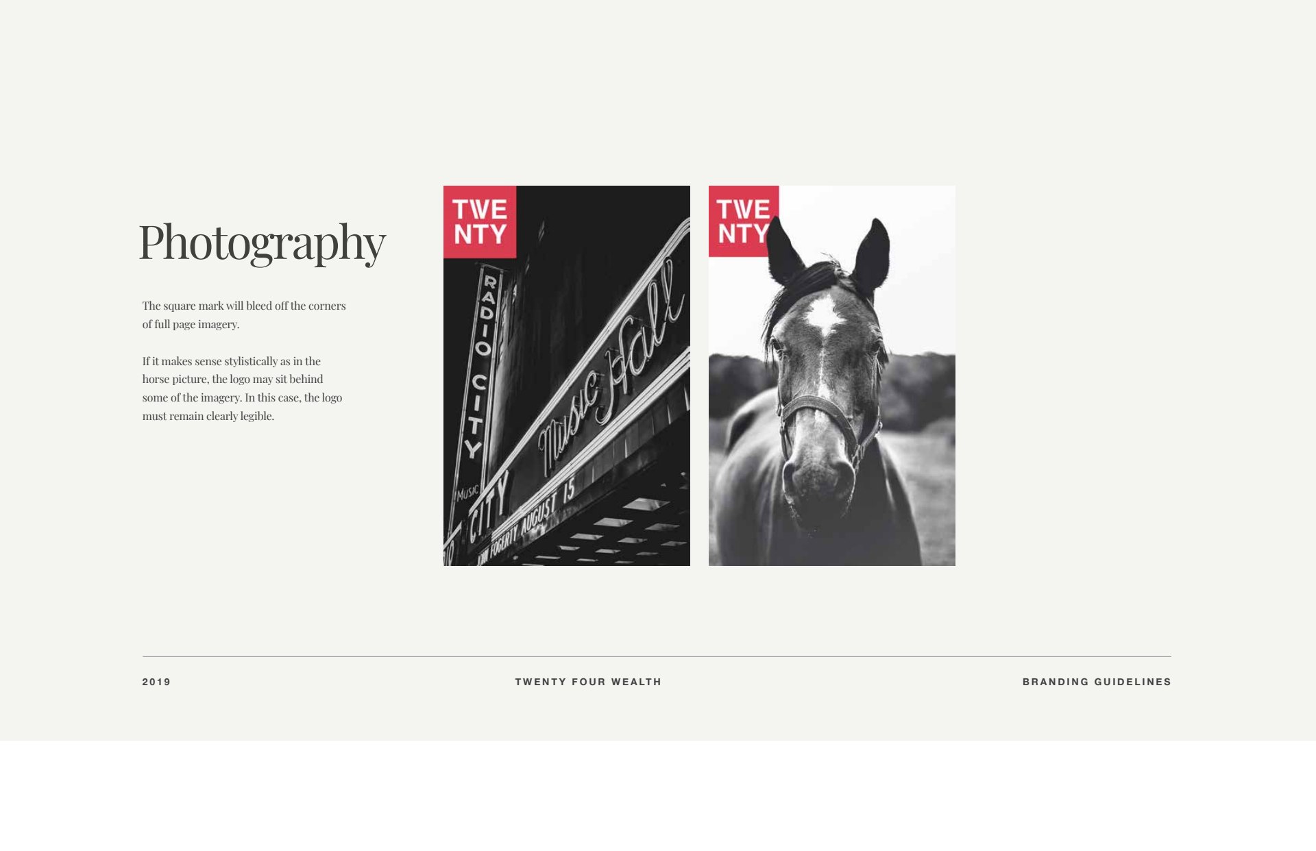 Logo + Tagline + Identity System / Brand guidelines for wealth management company Twenty Four Wealth