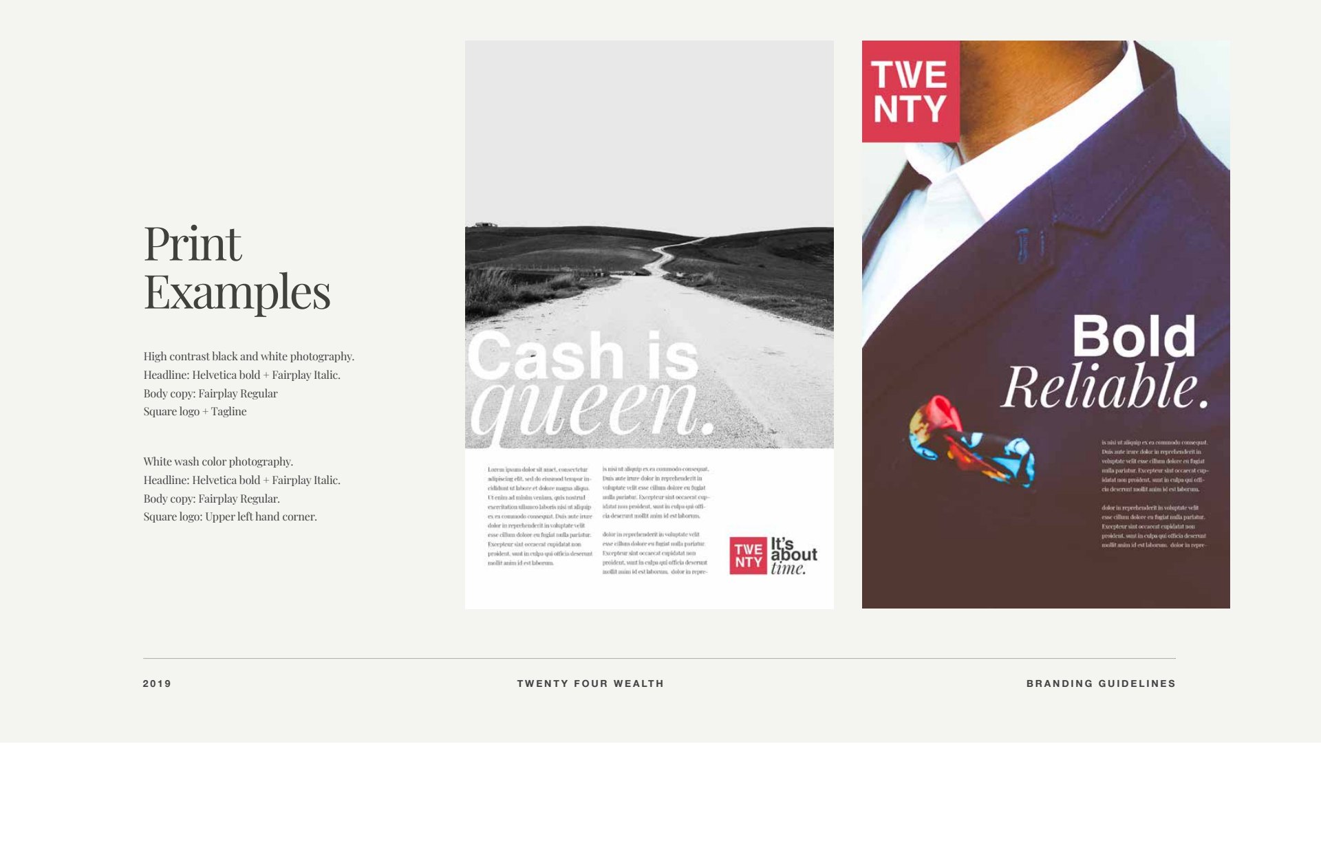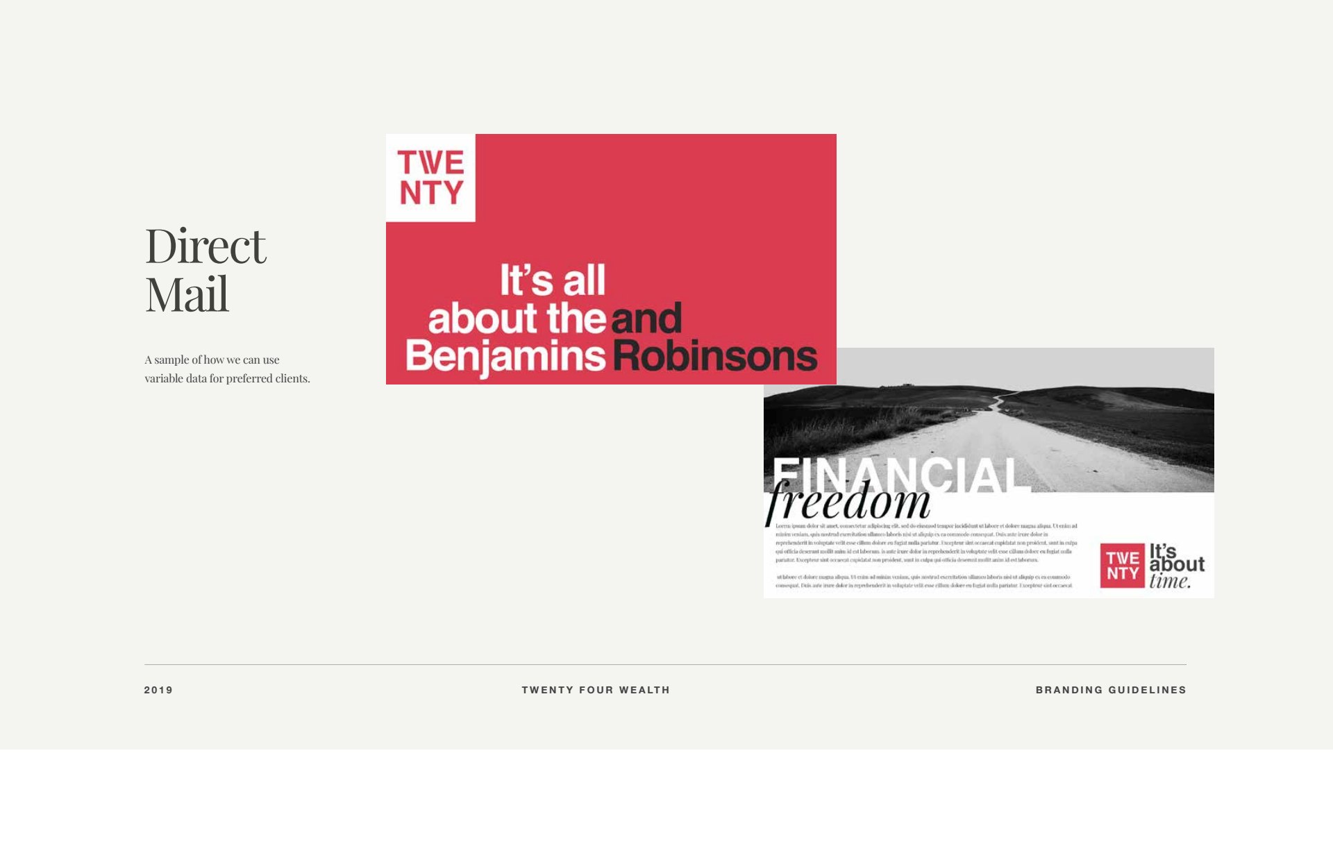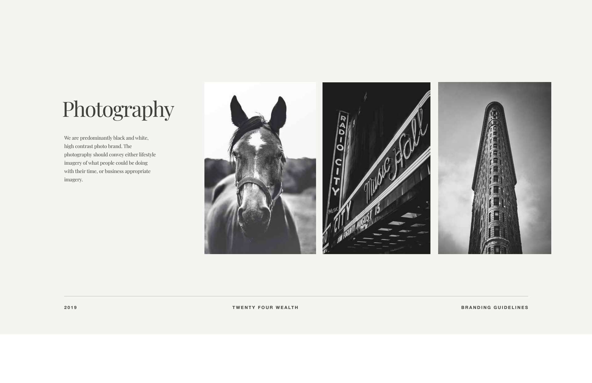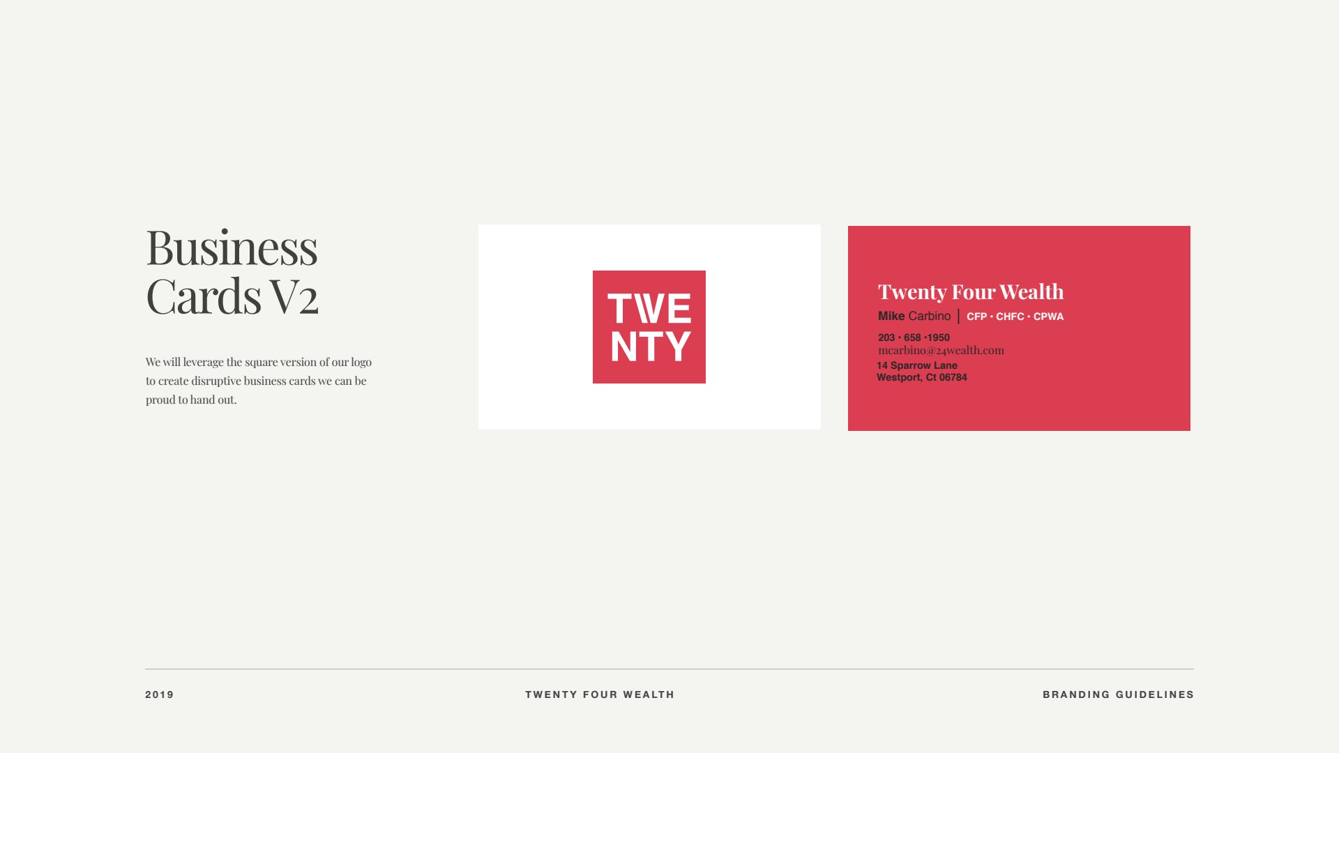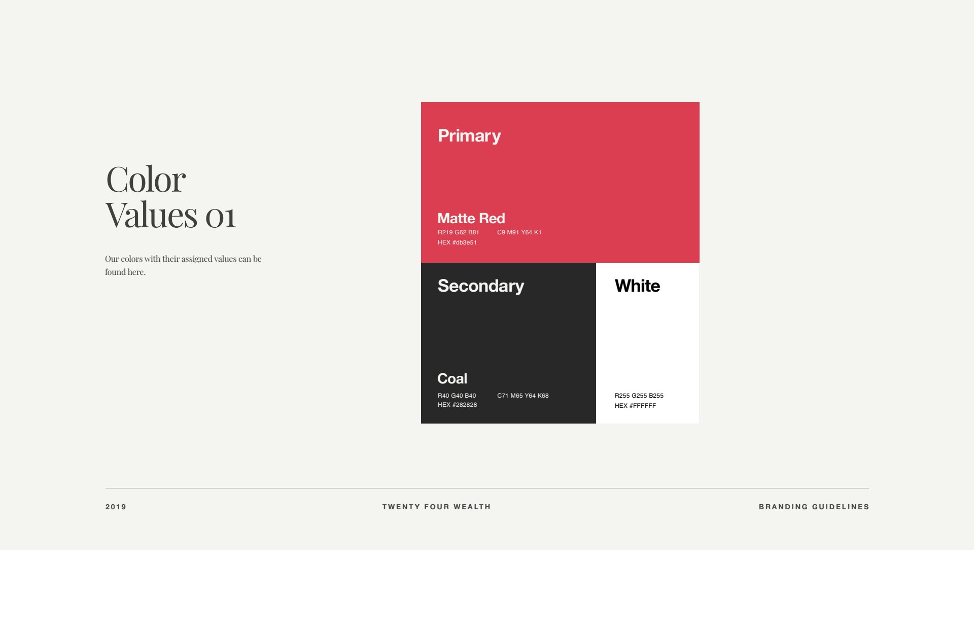 Logo + Tagline + Identity System / Brand guidelines for wealth management company Twenty Four Wealth